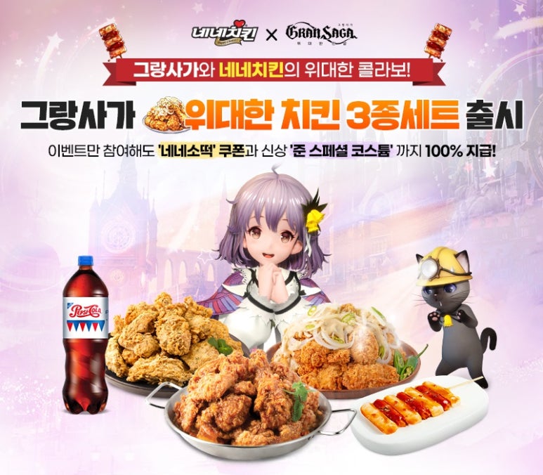‘네네치킨’과 제휴, MMORPG ‘그랑사가’의 컬래버레이션 제품 출시 및 이벤트를 진행한다.