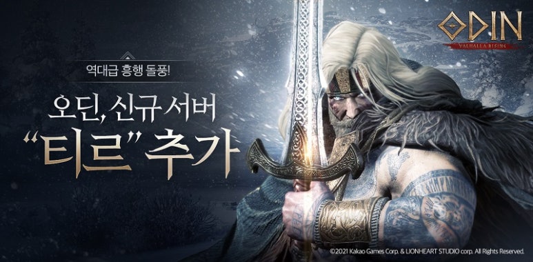 이용자 급증으로 모바일 MMORPG ‘오딘: 발할라 라이징’의 신규 서버)티르)를 추가하고 이벤트를 시작했다.