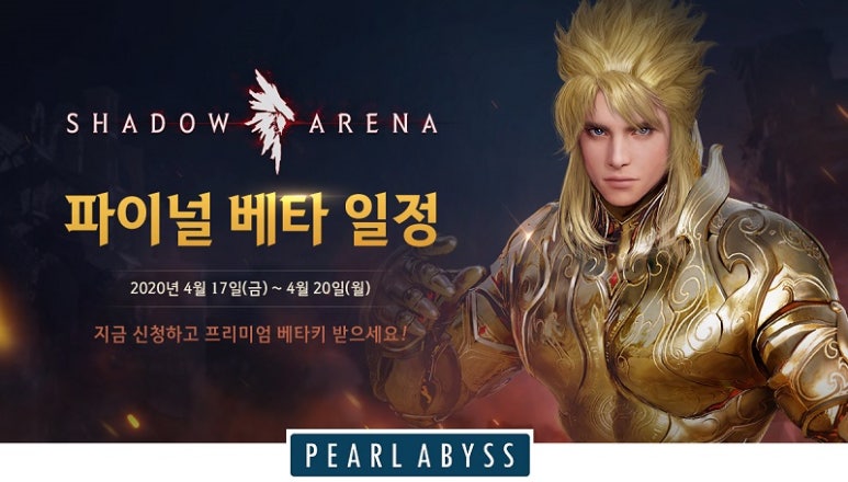 펄어비스는 이날 자체 개발 중인 PC 온라인게임 '섀도우 아레나' 마지막 비공개 테스트(CBT) 일정(4월 17일~20일)을 공개하고 참가자 모집에 나섰다.