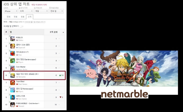 넷마블은 이날 지난 3월 3일 글로벌에 출시한 모바일 RPG '일곱 개의 대죄:그랜드 크로스'가 북미를 포함한 전 세계 19개국 애플 앱스토어 매출 톱10에 재진입했다고 밝혔다.